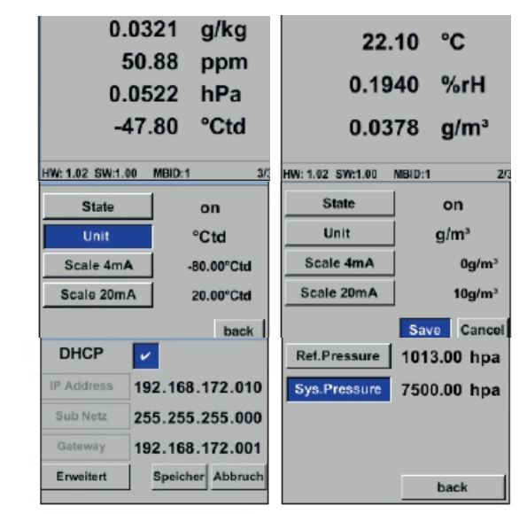 -含湿率 V/V [DDmV/V] - 水蒸气分压 [hPa] - 大气露点 [℃td.atm] -