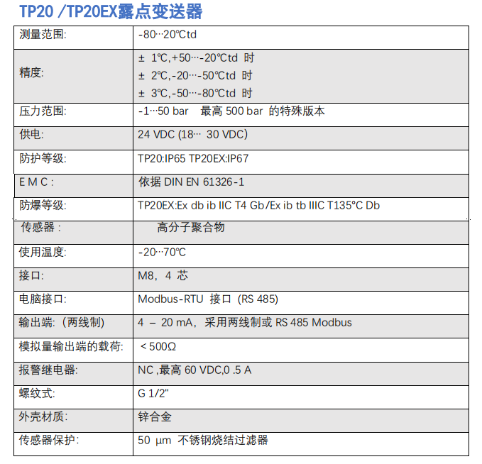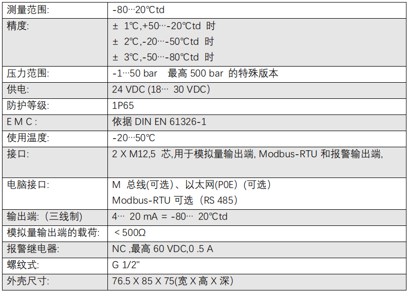 主要用于冷冻式干燥机、膜式干燥机和吸附式干燥机的露点测量仪,集成有显示屏和报警继电器.压力露点 [℃td.] - 温度 [℃] - 相对湿度 [%RH] - 绝对湿度 [g/m3] - 湿度 [g/m3]