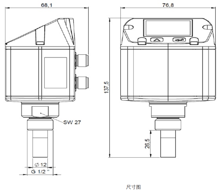 集成显示屏 , 可通过按键设置极限值,报警继电器(*高 60 VDC,0.5 A)